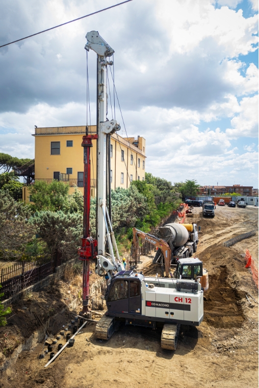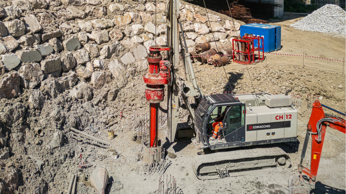 Con un peso massimo di trasporto inferiore a 32 ton, rotary e la barra Kelly comprese, può essere facilmente trasportata, scaricata e messa in funzione senza la necessità di attrezzature di sollevamento esterne.La CH 12 si distingue per le prestazioni di coppia e l'elevata stabilità, che le consentono di eseguire lavori di perforazione impegnativi in un'ampia gamma di applicazioni. Può essere equipaggiata con un sistema di tiro-spinta a cilindro (CS) o ad argano (WS), adattandosi in modo flessibile a diversi metodi di perforazione tra cui la perforazione con kelly, i pali CFA (fino a 800 mm di diametro), i pali trivellati con rivestimento, i pali FDP e i trattamenti di soil mixing. La CH 12 è disponibile in configurazione Low Headroom per cantieri ad altezza ridotta.