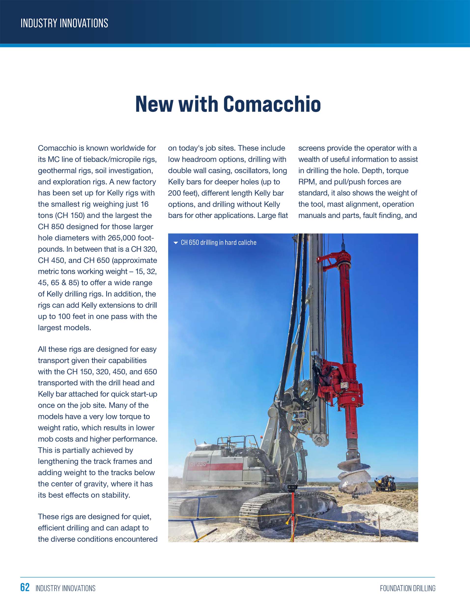 Le "FONDAMENTA" del progresso. Due perforatrici Comacchio CH 450 in configurazione da micropalo sono state impiegate dall’impresa torinese TERRA. Con a Chiomonte, in Val di Susa, per la realizzazione di pali di fondazione per le pile del viadotto che consentirà il transito dei mezzi d’opera per lo scavo del tunnel di base dell’Alta Velocità.